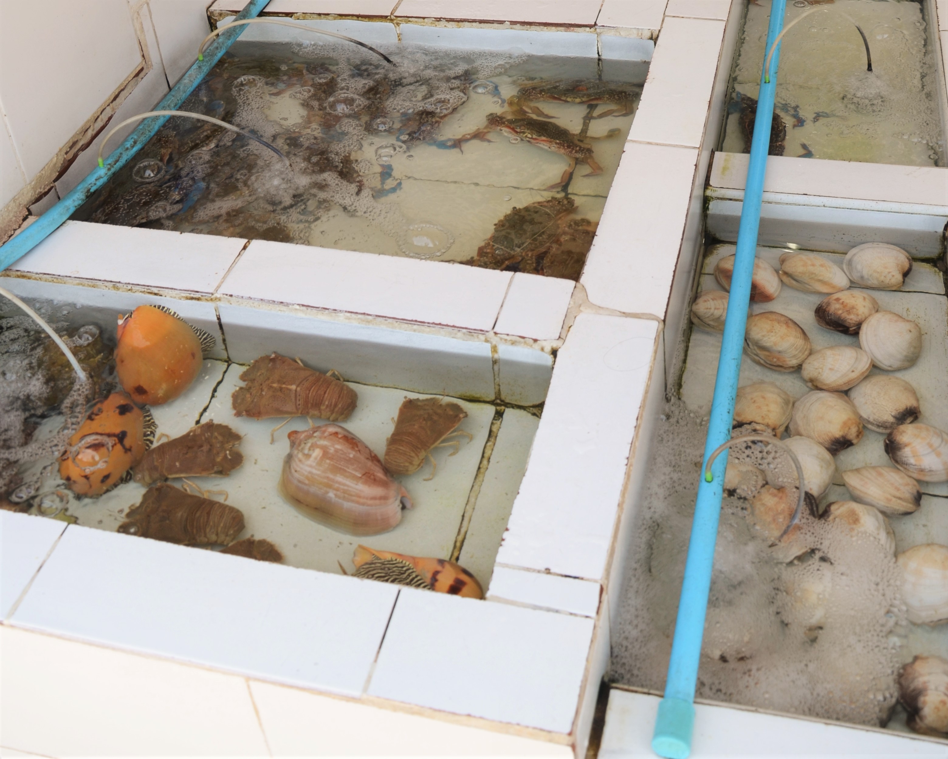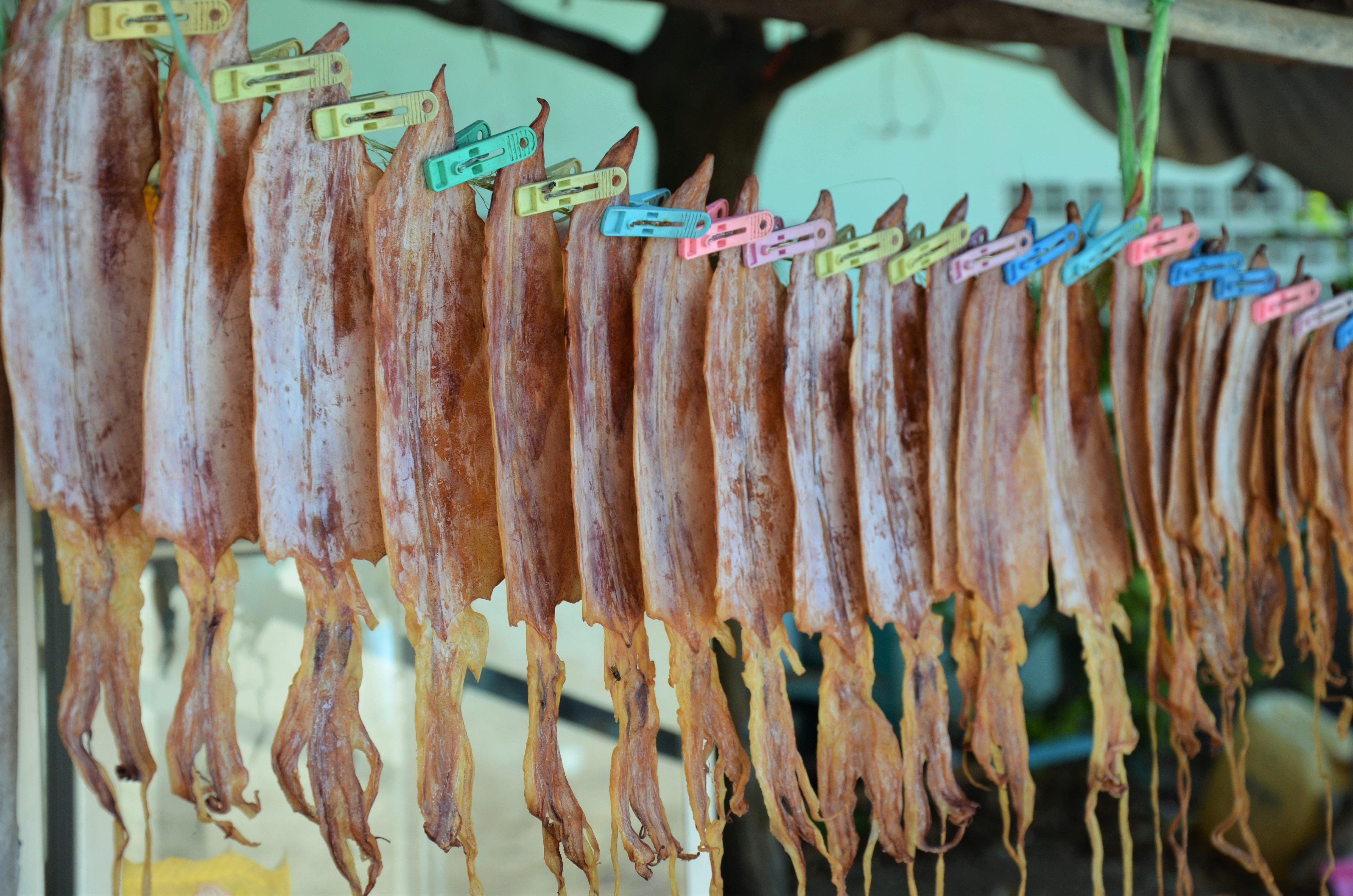 Seafood… es soll Menschen geben, die diese an der Luft getrockneten und durchaus geruchsintensiven Tintenfische sogar essen…was da alles so rumschwimmt wäre auch lieber im Meer geblieben…