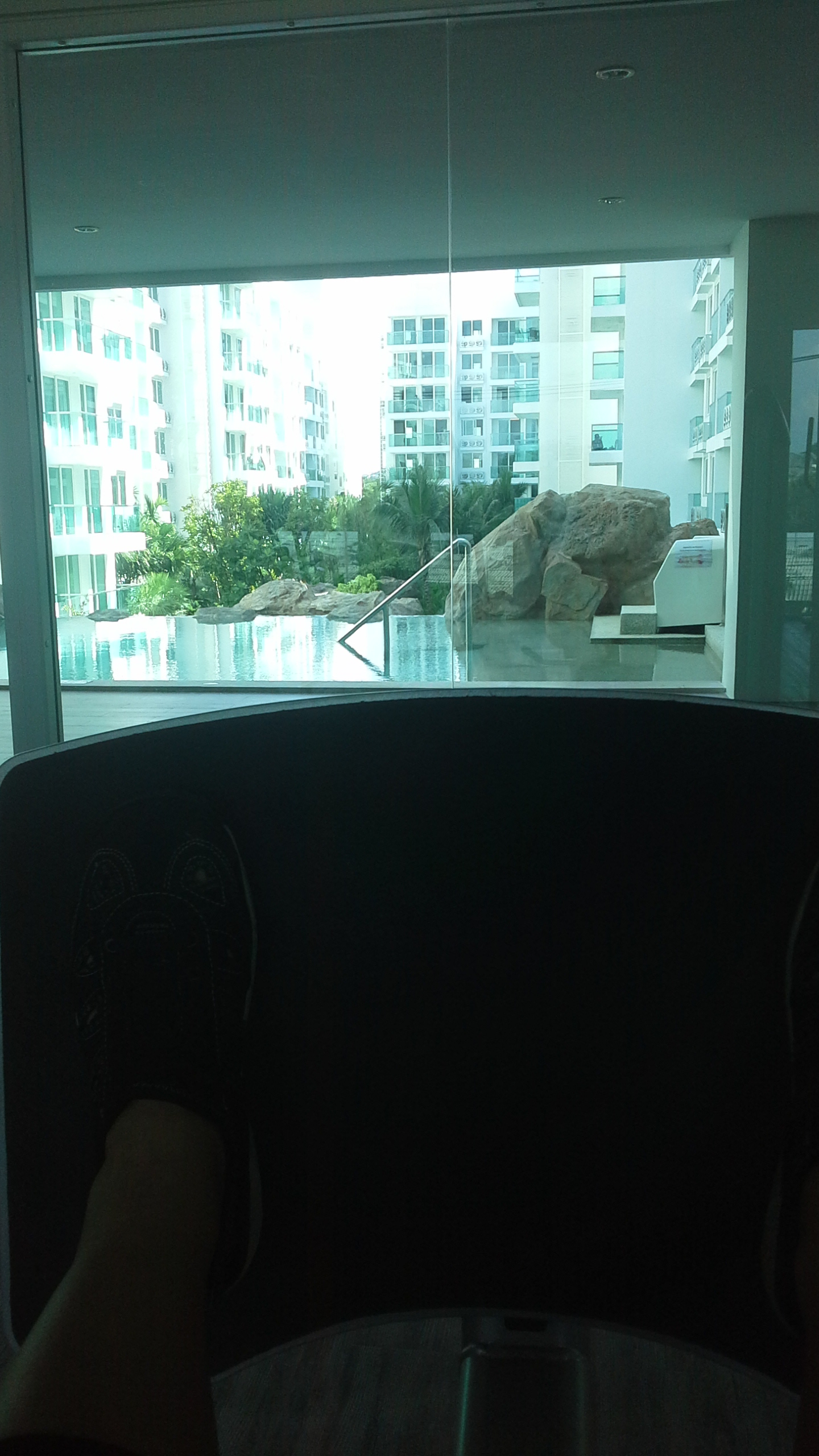 Meiner fing heute im Fitnesscenter an, der sich ja im gleichen Haus befindet bei strahlendem Sonnenschein und wunderbarer Aussicht auf einen der oberen Pools 🙂