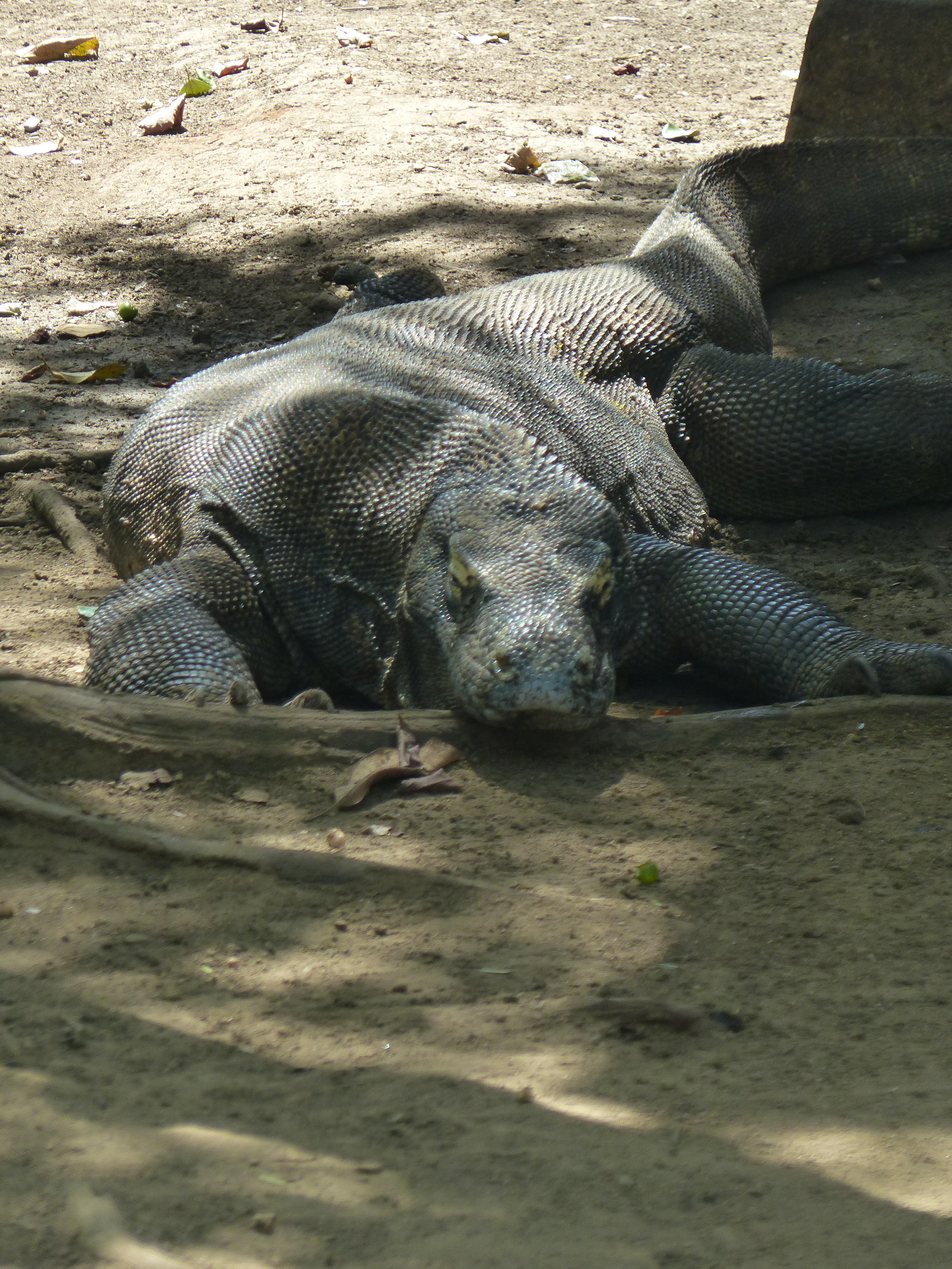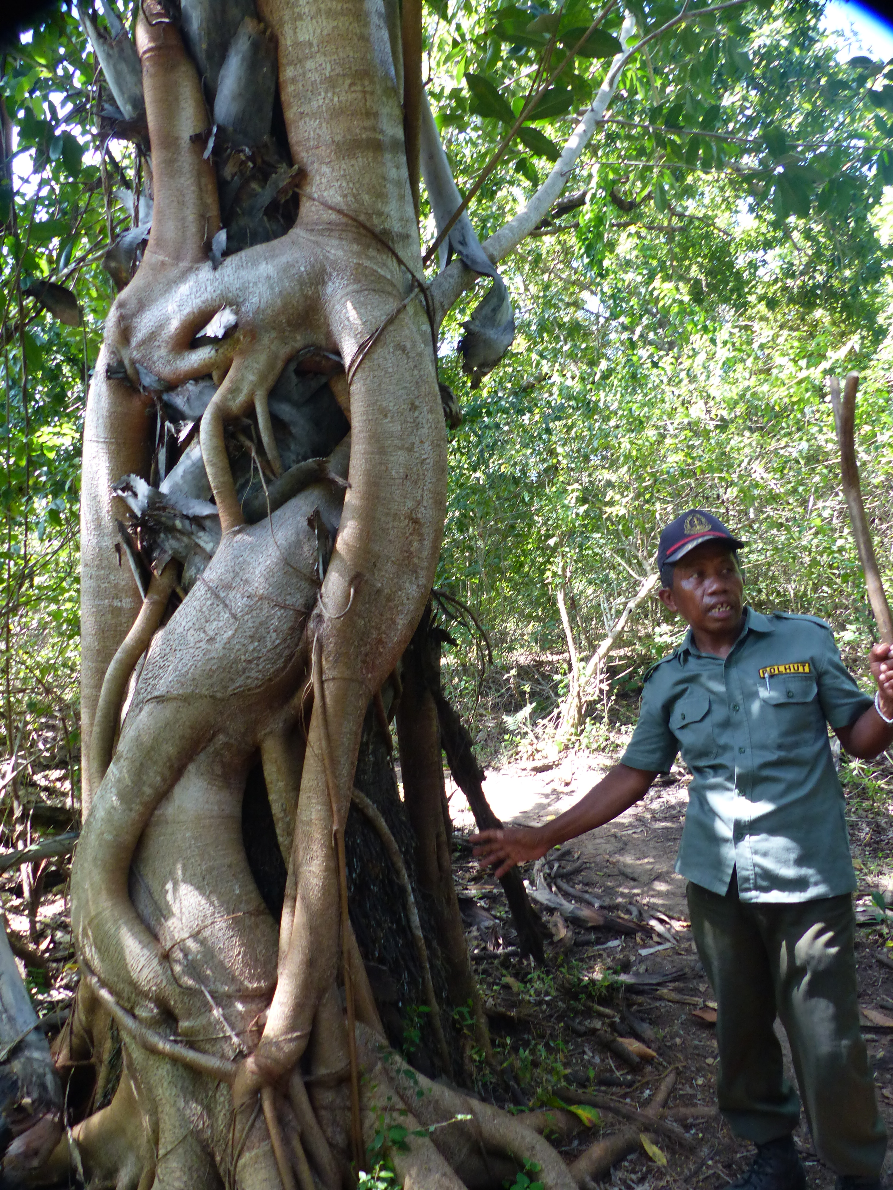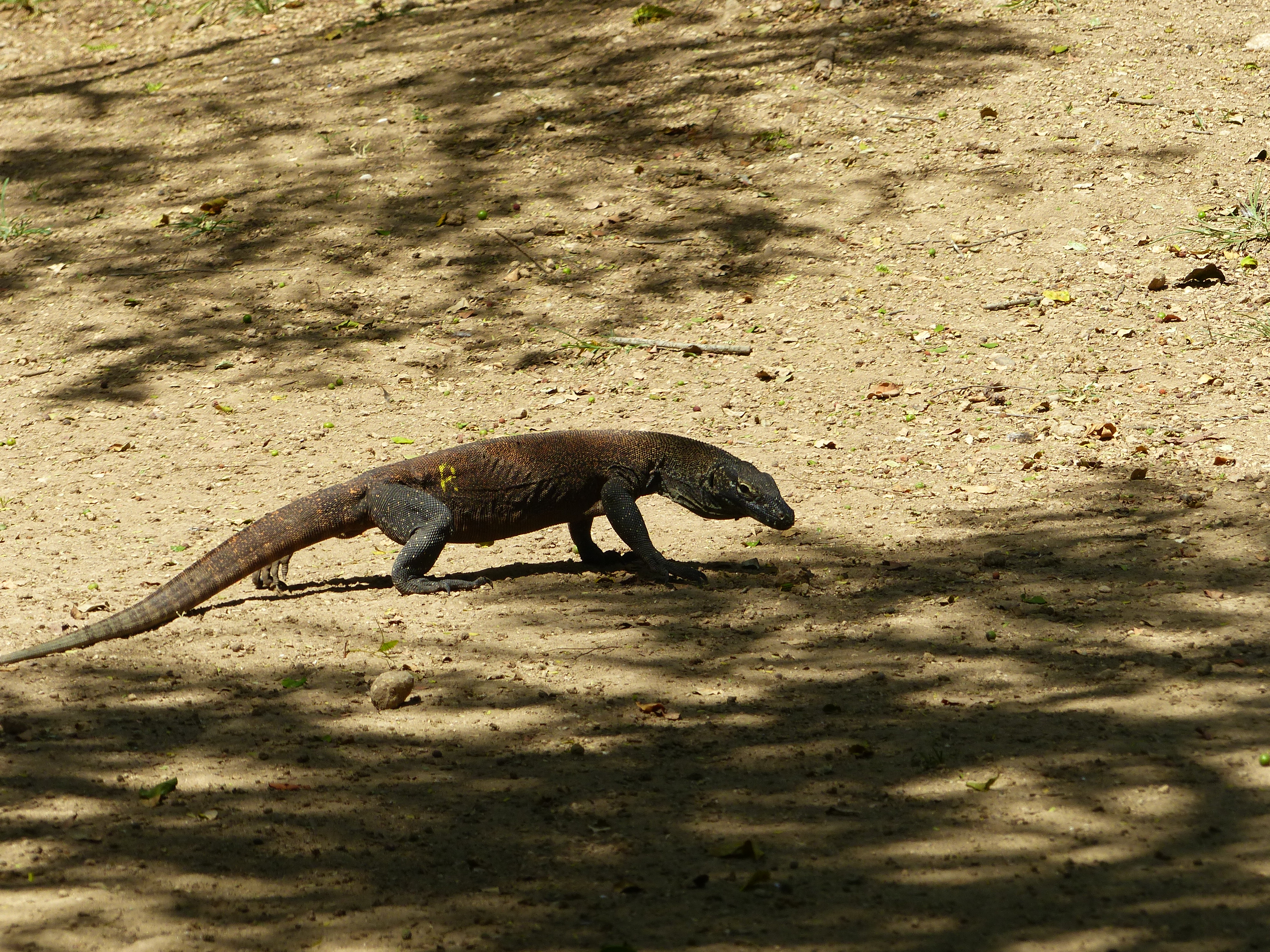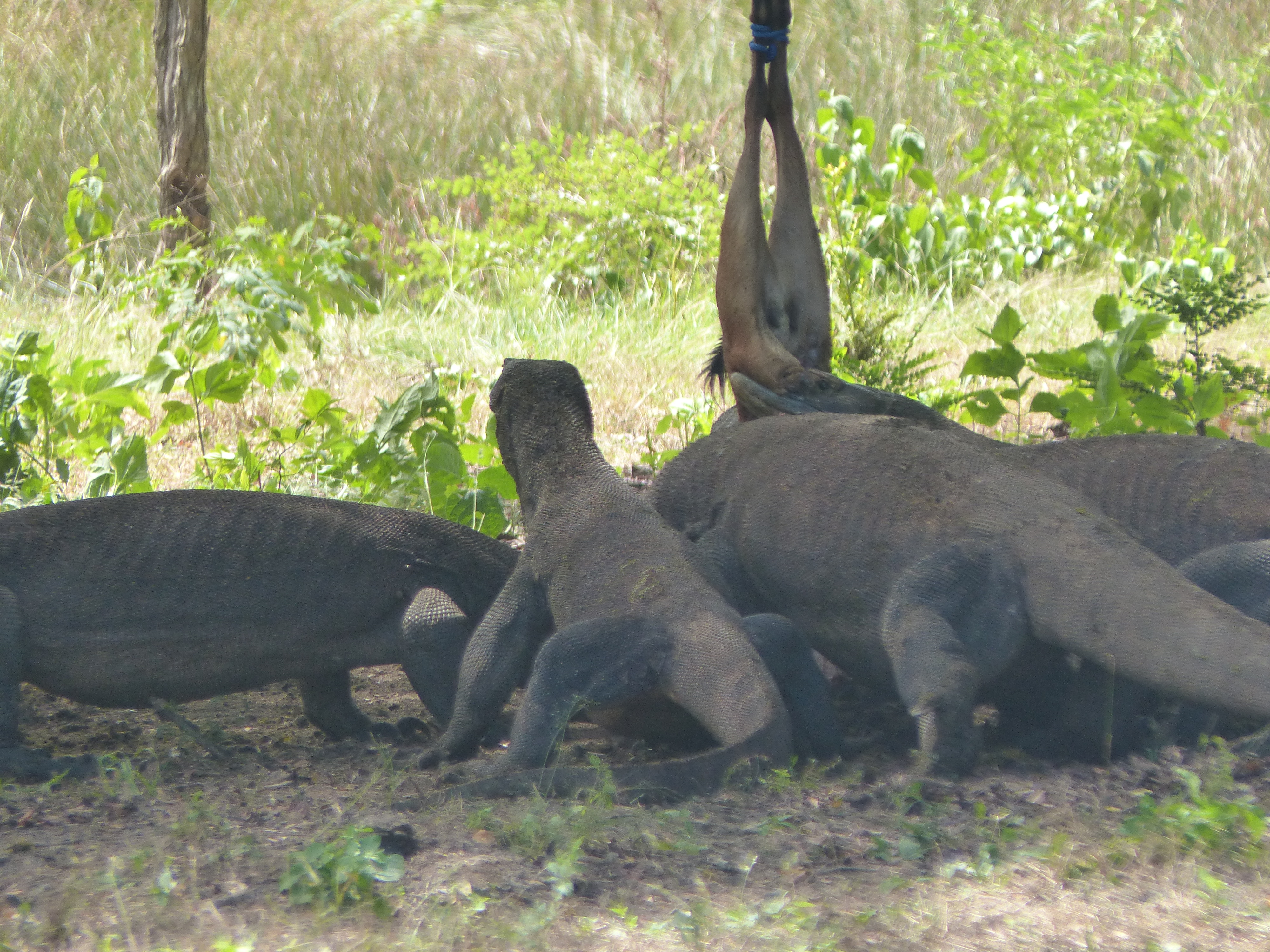 Die Warane werden ca. 3 Meter lang und 70 kg schwer. Junge Warane leben auf den Bäumen, damit sie nicht von kannibalischen Artgenossen gefressen werden. Warane fressen Säugetiere und Aas und sehen zwar langsam aus, können sich aber ruckartig schnell bewegen und ca 15 km/h laufen. Deswegen sollte man das ganze nicht unterschätzen. Die Runden mit den Rangern, die mit Stöcken bewaffnet sind, sind relativ sicher, solange man sich an die Anweisungen hält und bei der Gruppe bleibt. Normalerweise sind Fütterungen mit toten Ziegen, die von Bäumen baumeln, strengstens verboten, aber gegen viel Geld immer machbar. Als ich da war, hingen einige Ziegen und es war Fütterungszeit. Als Ausländer durfte man überhaupt nicht in die Nähe oder filmen. Beides ist mir jedoch gelungen. Erstaunlich welch riesige Stücke so ein Waran auf einmal herausreißen kann. Die Zähne sind messerscharf und sie sondern ein giftiges Enzym ab, welches das Opfer lähmt. Durch das Gift und die Infektion stirbt man auch nach nur einem einzigen Biss.